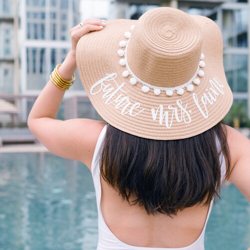 Custom White Pom Pom Floppy Beach Hat Bachelorette Trip Etsy
